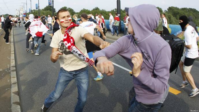 در آستانه بازی روسیه و لهستان در جریان جام ملت های اروپا، هواداران این دو تیم در خیابان های ورشو و اطراف ورزشگاه ملی این شهر که محل برگزاری این مسابقه است، درگیر شدند.