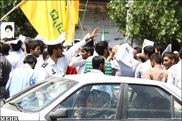 به گزارش خبرنگار مهر، تجمع خود جوش مردم تهران بعد از پایان مراسم نماز جمعه دراعتراض به وضعیت بدحجابی در جامعه و کم کاری سازمانها و نهادهای فرهنگی و همچنین دفاع از اقدام نیروی انتظامی در مبارزه با بد حجابی در میدان انقلاب تهران برگزار شد.