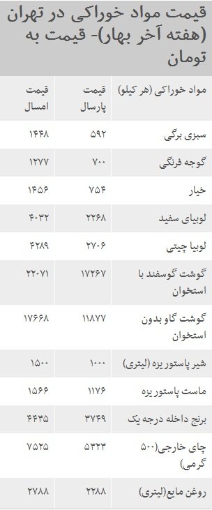 بنابر گزارش بانک مرکزی ایران در آخرین هفته بهار، انواع سبزی تازه، گوشت مرغ و حبوبات بیشترین افزایش قیمت را نسبت به هفته مشابه سال قبل داشته اند.