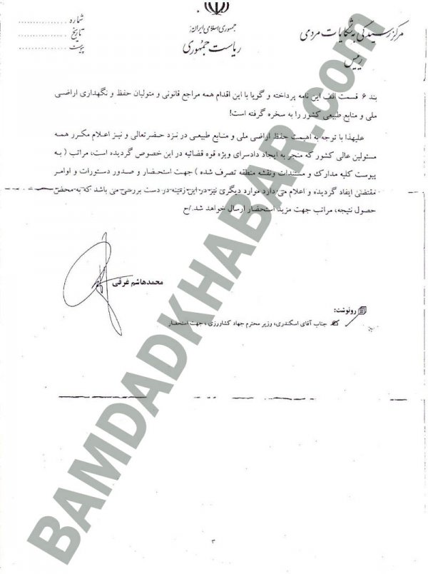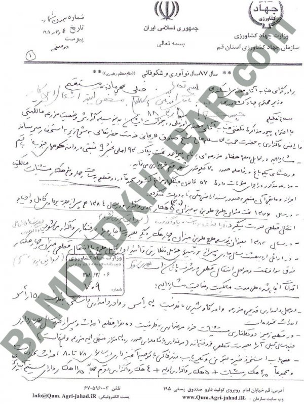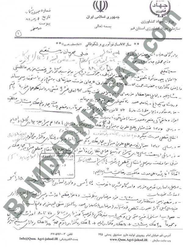 خاک اسلام ریخته تو سر ملت ایران, هر چی از شون مستقیم و غیر مستقیم دزدی میکنند هر بلائی سرشون میارند انگار این ملت رگ ندارند,میشه یه روزی بیاد که اینها بدست مردم تکه تکه بشوند و سرشون به نیزه بره, دزدای غاصب دست کمی از پسر عموهاشون در صدر اسلام ندارند. بد خطی همشون فریادی از بی سوادی است ؛ حال آدم از دست خط وزیر جهاد و کشاورزی بهم میخوره ........ تف به قبر خمینی و همه دارو دسته اتون.