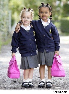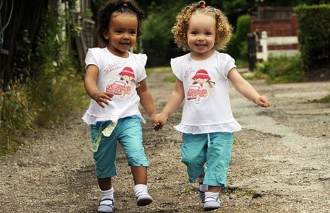 یاد اون فیلم جیم کری افتادم که خودشو خانومش سفید بودن ولی بچشون سیاه پوست بود. :)) این کوچولوها خیلی نازن. دلم میخواد یک دختر ناز کوچولو داشته باشم/.
