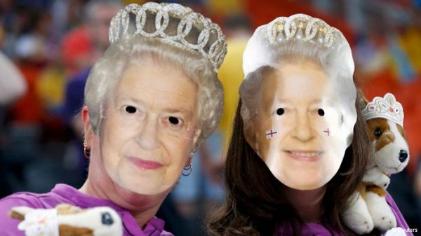 هواداران انگلیس با ماسک ملکهی بریتانیا در ورزشگاه دونتسک