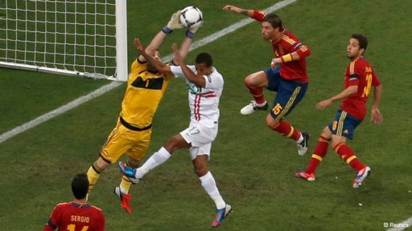 دقایقی بعد، تیم پرتغال موقعیتی برای ضدحمله یافت، سانتری که کریستیانو رونالدو، فوقستاره این تیم به سوی دروازه حریف ارسال کرد اما پیش از آنکه به نوک حمله پرتغال برسد، در دستان ایکر کاسیاس، سنگربان پرتجربه اسپانیا جای گرفت.