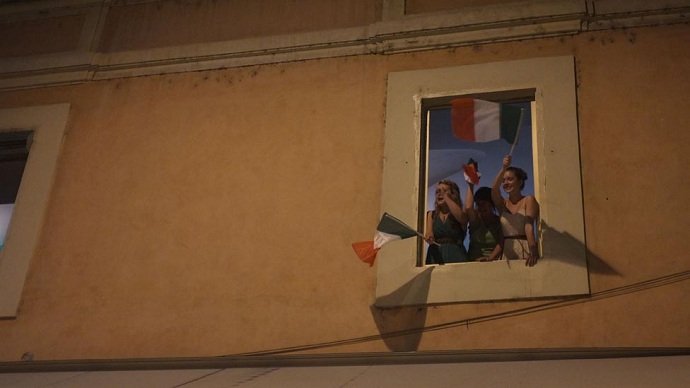 خیابان های رم هم مانند سایر شهرهای ایتالیا میزبان جشن و پایکوبی مردم بود