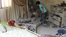 خانهی روستایی ویران شده پس از اصابت خمپارههای ارتش سوریه