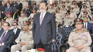 با وجود اینکه رابطه میان رئیس جمهور و نظامیان تنش آلود به نظر می رسد، اما روز دوشنبه محمد مرسی و حسین طنطاوی رئیس شورای عالی نظامی در کنار هم در مراسمی نظامی دیده شدند.