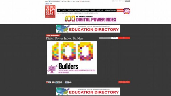 کوین سیستروم، یکی از بنیانگذاران اصلی "ایسنتاگرام" انتخاب بعدی "نیوزویک" است. "ایسنتاگرام" که حالا به یکی از موفقترین پروژههای استارتآپها در اینترنت مشهور است، تنها یک سال و نیم بعد از افتتاح و در حالی که فقط ۱۳ کارمند داشت، موفق به جذب بیش از ۳۵ میلیون کاربر از سراسر جهان شد.