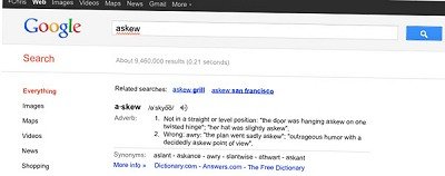 عبارت askew را در موتور جستجوی گوگل تایپ کرده و کلید Enter را به فشارید تا کل صفحه کج شود!