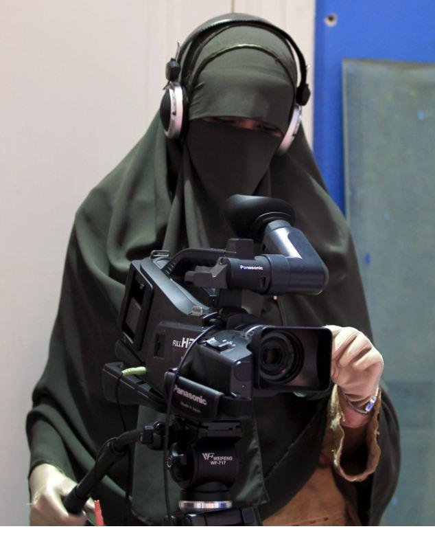 در استدیوی این شبکه تنها زنان نقاب دار جلوی دوربین حاضر می شوند و برنامه اجرا می کنند.