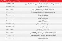 براساس این جدول دانشگاه امام صادق سه میلیارد و ۵۰۰ میلیون تومان و مرکز اسناد انقلاب اسلامی به ریاست روح الله حسینینان یک میلیارد و ۵۰۰ میلیون تومان کمک دریافت می کنند.