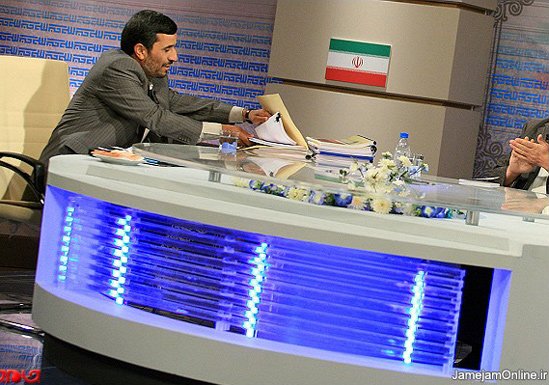احمدینژاد: من باید دوباره تکرار کنم، آن جمله قبلی را درباره قضاوت های جناب آقای موسوی، این دولت قانون را زیر پا گذاشته، شما استنادتان فقط به یک مصوبه مجلس است، آن هم قانون شوراهاست، شورای نگهبان می گوید این خلاف قانون اساسی است، مجمع تشخیص می پذیرد، اگر شما می خواهید قانون را اجرا کنید و واقعاً معترضید، دو خط بنویسید به دیوان عدالت اداری؛ ما قانون داریم که اگر دولت بر خلاف قانون عمل کرد، میآید باطل می کند.