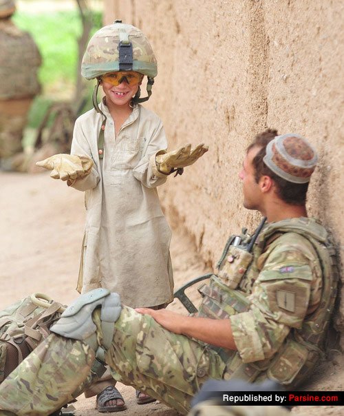کودک افغانستانی و سرباز آمریکایی