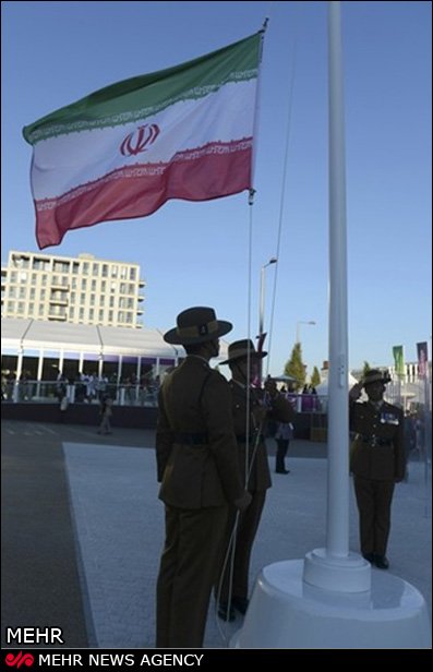 ادایاحترامسربازانانگلیسیبهپرچمایران در مراسم اهتزاز پرچم ایران در دهکده بازیهای المپیک لندن