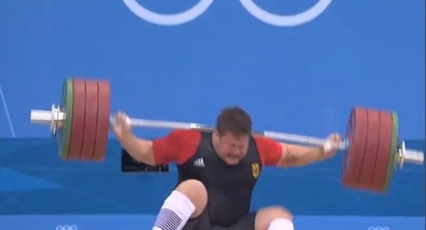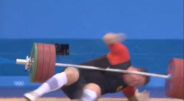 عکس پنجم از بالا دقیقا مشخص میکنه که گردن وزنه بردار زیر وزنه آسیب جدی میبینه.