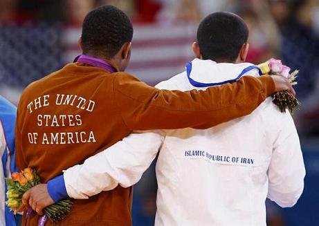 این عکسو دیدم کلی حال کردم!این آخوندان باعث شدن با آمریکا مشکل پیدا کنیم وگرنه ما مشکلی نداریم!البته تقصیر دولت آمریکا هم هست!یه جای دیگه ای که خیلی خوب بود صحنه های دست دادن کشتی گیران و لمس شدن بدنشون توسط داورای زن بود انگار که به جمهوری اسلامی فش دادن!خیلی قشنگ بود تیری بود وسط قلب خامنه ای و طرفدارای مرتجعش!