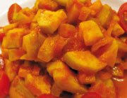 * بعد از طلایی شدن آنها گوجهفرنگیهای نگینی را اضافه کنید تا آب بیندازند.