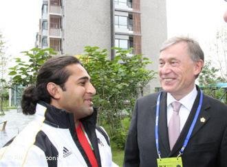 علی غردونی قهرمان پرتاب دیسک معلولان جهان در کنار هورست کهلر رئیسجمهور پیشین آلمان (پارالمپیک ۲۰۰۸ پکن)