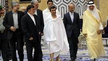 احمدینژاد بیتوجه به آلام زلزلهزدگان زودتر از موعد به جده رفت. او در پوشش احرام به دیدار با امیر مکه شتافت و انتقادهای بسیاری را برانگیخت