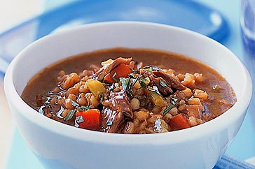با گوشت گاو مزه دار شده با نمک و سیر به همراه جو و دیگر سبزیجات، سوپ بسیار لذیذی تهیه شده که دستور العمل آن در پایین آمده است. توجه کنید که بعد از خرید گوشت آنرا کاملاً تمیز کرده و تمام چربی آن را جدا کنید.