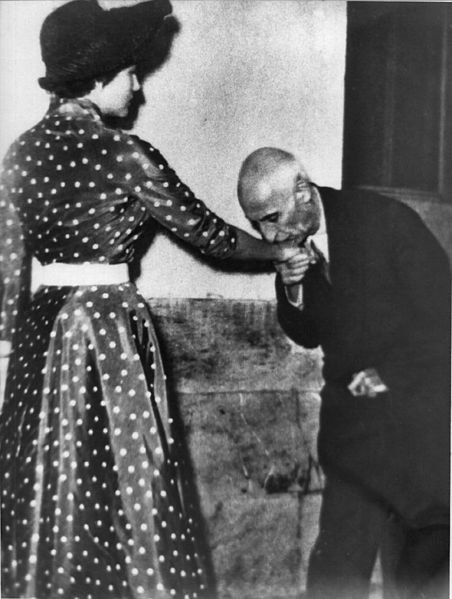 تصویری قدیمی از دست بوسی مصدق در برابر ثریا پهلوی