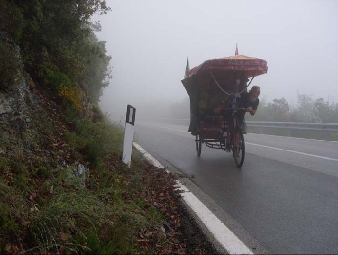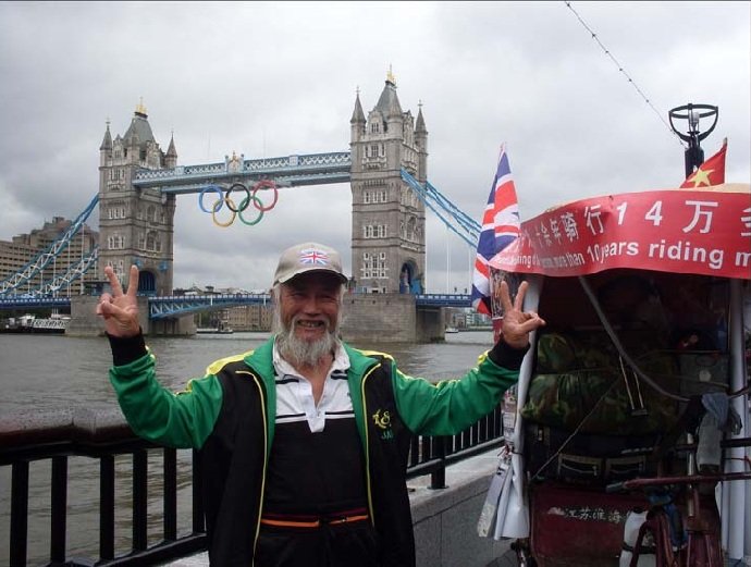 بی بی سی : جان گوان مینگ کشاورز چینی در سال ۲۰۱۰ تصمیم گرفت با ریگشای خود بمناسبت المپیک ۲۰۱۲ به لندن سفر کند. او طولانیترین مسیر را انتخاب کرد و راه افتاد. ازکشورهای ویتنام، کامبوج، تایلند، مالزی، تبت، هیمالیا، پاکستان، افغانستان، ایران، ترکیه، یونان، ایتالیا و فرانسه گذشت تا لندن رسید. جان گوان مینگ درمسیرش از سیل مالزی و برف و بوران مناطق کوهستانی ایران عبور کرد و شبها را در ریگشای خود گذراند. جان در مسیر خود با مردم کشورهای مختلف عکس یادگاری گرفته است. او وقتی وارد لندن شد که کسی انتظارش را نمیکشید. جان بعد از ورود به لندن خود را به محله چینیها رساند و در آن محله مستقر شد. امید صالحی عکاس ایرانی با جان در محله چینی ها دیدار کرد و با دیدن عکسهای سفر این کشاورز چینی، تعدادی از عکسهایش را برای انتشار انتخاب کرد که با یک دوربین کوچک به صورت یادگاری گرفته شده بود. جان قصد دارد به سفر خودش ادامه دهد تا در المپیک ۲۰۱۶ به شهر "ریو دو ژانیرو" در برزیل برسد. او ترجیح میدهد بدون حمایت مالی سفرش را به پایان برساند.
