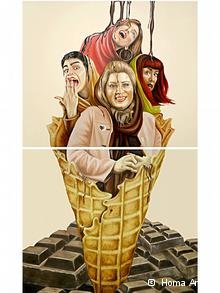 یکی از این چهار شخصیت خود نقاش است. در حقیقت نقد هما ارکانی نگاه با فاصله نیست، بلکه خودش نیز بخشی از نقد اجتماعی است.