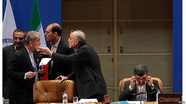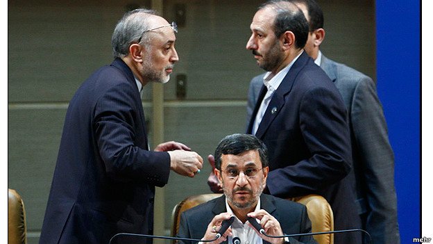 معاون بین الملل رئیس جمهور ایران در کنار وزیر خارجه و محمود احمدی نژاد