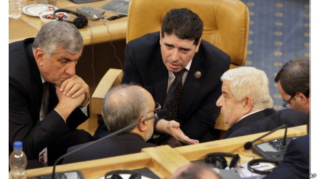 حضور علی اکبر صالحی، وزیر خارجه ایران در میان هیات سوری حاضر در اجلاس. نفر سمت راست رو به تصویر نخست وزیر و سمت چپ سفیر سوریه در تهران است. ولید معلم وزیر خارجه سوریه هم در تصویر دیده می شود.