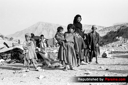 زن بختیاری در کنار فرزندانش