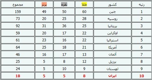 تعداد شرکت کنندگان هم مهم است مگر چند نفر از ایران شرکت کرده بودند اگر این جدول را با درصد بندی اعلام میکردنند بهتر نبود؟