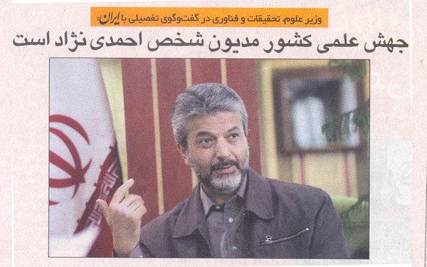 تصویر زیر مربوط به صفحه 34 ویژه نامه امروز روزنامه دولتی ایران است که با عنوان "دولت معیار "منتشر شده است.