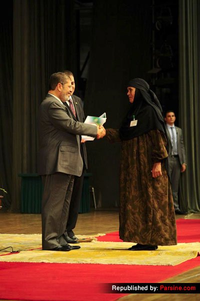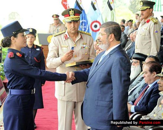 محمد مرسی در مراسم اهدای درجه به افسران زن مصری