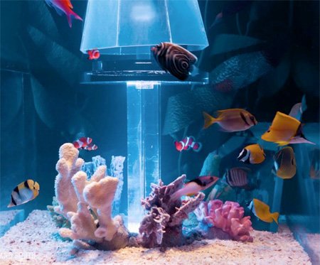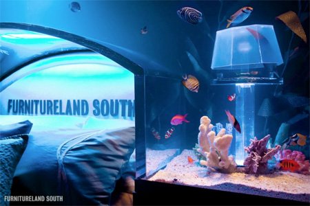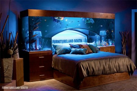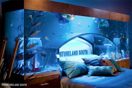 تختخوابی در میان آکواریوم