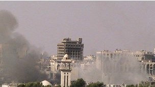 گروه ناظر سوری برای حقوق بشر می گوید که محله خلدیه هدف حمله هواپیماها و توپخانه قرار گرفته است.