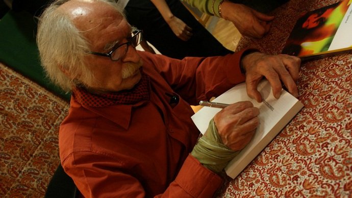 محمود دولت آبادی در پایان این نشست، نسخه هایی از رمان "کلنل" را برای خریداران امضا کرد.