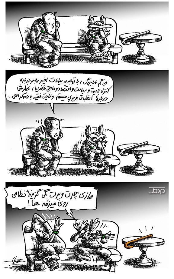 مهر تن - بندر - ایران : خیلی ساده ، رهبران ایران هر موقع کم میارن از گزینه نظامی صحبت میکنند ، بابا بزرگ هم گزینه نظامی که همون عصای معروفش باشه رو گذشته رو میز به عنوان گزینه نظامی که البته در دولت ایران با عصا به جنگ نمیرن یه کار دیگه میکنن