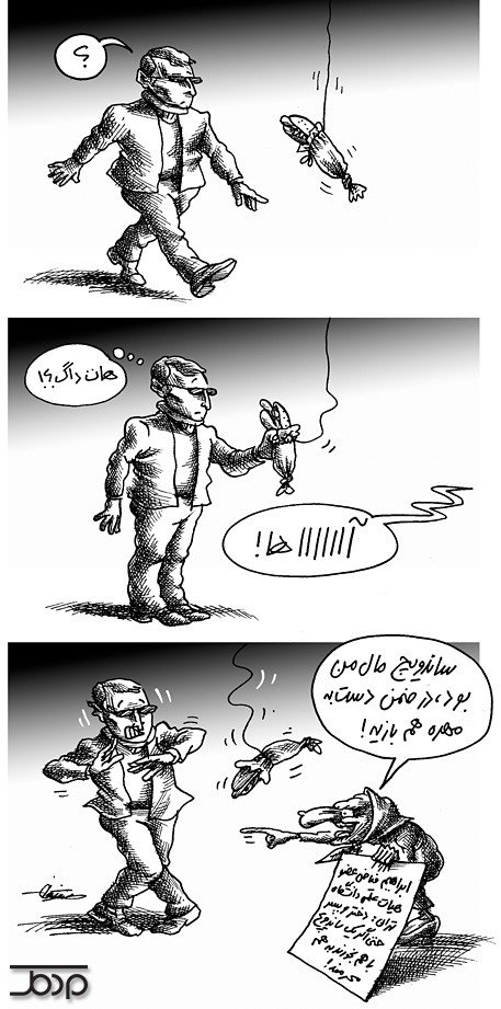 لعنت!!!. حالا با این حرف قیمت ساندویچ میره بالا!!!!. ساندویچ فروشیها یه اتاق درست میکنن که بعد از صرف ساندویچ زوجهای محترم میتونن برن اونجا استراحت کنن!!. ساندویچهای تقویتی و مدت دار به بازار میاد!!!. دو نفر دارن ساندویچ میخورن و یه عده دارن دورشون میرقصن،یه ماشینم بیرون بوق میزنه!!!. و ازین به بعد.... عروس رفته ساندویچ بیاره!!!!!