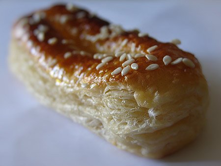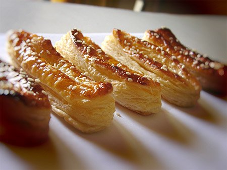 مرحله 2 - خمیر آماده را به قطر 1 سانتیمتر باز کرده و با قالب مخصوص زبان آنرا قالب زده، سپس یک برش طولی و عمیق وسط آن ایجاد کرده، مقداری شهد روی آنها داده و در فر 200 درجه سانتیگراد که از قبل گرم کرده اید به مدت 10 تا 12 دقیقه قرار دهید تا شیرینی کاملا پف کند. برای اینکه روی شیرینی طلائی شود از گریل استفاده کنید.