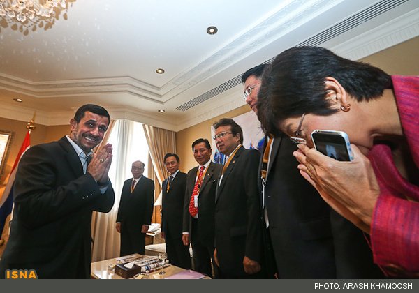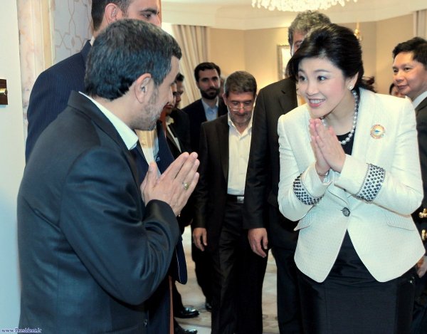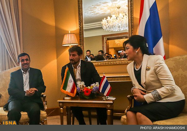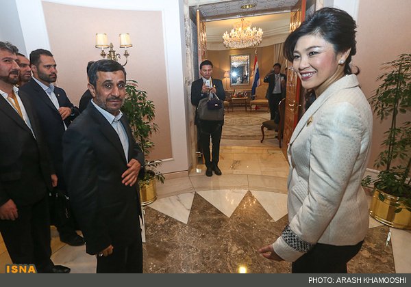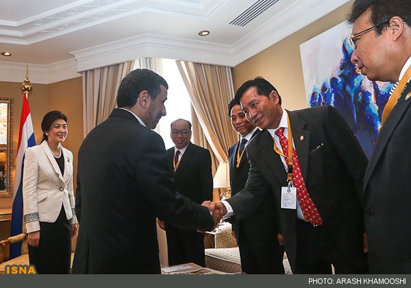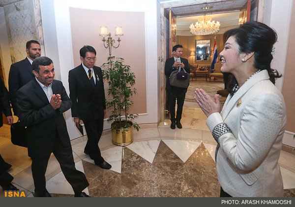 محمود احمدی نژاد، روز چهارشنبه، پیش از آغاز نشست صبح مجمع گفت و گوی همکاری آسیایی با "یینگلاک شیناواترا" نخست وزیر تایلند دیدار و گفت و گو کرد.