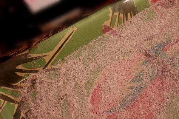 فرگذاری: در این مرحله باید خمیر را بازتر کرده و بر روی صفحه فلزی سوراخ سوراخ مناسب اینکار و فر است قرار یدهیم. اگر دست بر وسط خمیر قرار بگیرد و با یه حرکت سریع پایین و بالا, خمیر به راحتی کش میاید و بشکل یکنواخت باز میشود. اگر یادتون باشه, تو ایران دو دست رو در وسط قرار میدادند و خمیر رو از دوطرف میکشیدند و یا کش میدادند