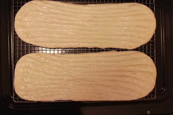 بعد از گذشت 10 دقیقه چونه ها رو با دست باز میکنیم – بدون استفاده از وردنه و یا ابزار مشابه خواهش میکنم! دلیلش هم اینه که حالت متخلخلش از بین نره با این کار. بعد از باز کردن با دقت و حوصله خمیر رو ناخن میزنیم تا به فرم نون بربری در بیاید. با برس از اون شربتی که درست کرده بودیم بر روی نون ها میمالیم. تفاوت یه خمیر شربت خورده و نخورده مشخص است. الان میتونید خشخاش اضافه کنید