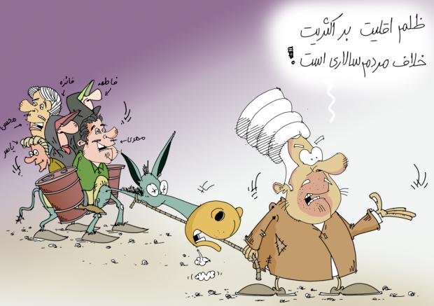 کاریکاتور شماره 4 تصویری از امت اسلام در سال 57 را تداعی میکند.