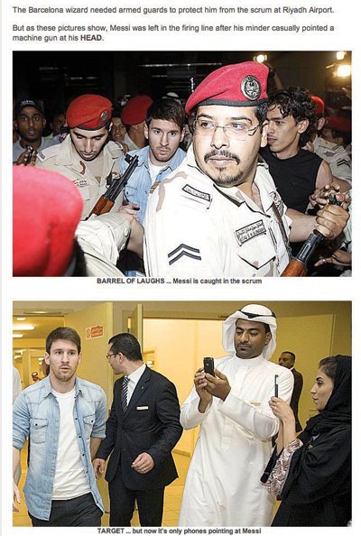 اولش گفتم مسی رو گروگان گرفتن. بعدش داستان رو که خوندم دیدم اونا مثلا نیروی پلیس هستند! ظاهرا هرچی سریاز صفر بیکار داشتند فرستادن اونجا. یارو نمیدونه اسلحه رو کدوم طرفی باید بگیره!