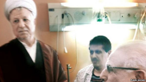 اکبر هاشمی رفسنجانی (چپ) در کنار پسرش، مهدی، در بیمارستان