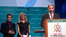 آرش علایی به هنگام دریافت جایزه الیزابت تایلور برای مبارزه با ایدز