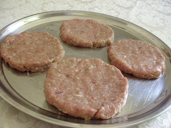طرز تهیه هم که بسیار ساده است: گوشت پیاز نمک و فلفل رو خوب مخلوط کرده و بشکل یک توپ بزرگ در میارید. فرض کنید همون ۶۰۰ گرم گوشت داشتید، باید به ۴ قسمت برای ۴ نفر تقسیم بشه و در یک سینی که قبلا با روغن چرب شده بشکل گرد پهن بشه. روغن برای اینه که گوشت به سینی نچسبه. گردیها رو بزرگ بگیرید چون طی کباب شدن خودشون رو حسابی جمع میکنن اما زیاد کم قطرش نکنید.