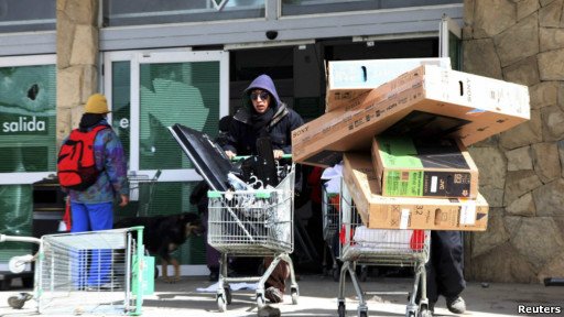 سرجیو برنی، وزیر امنیت ملی آرژانتین گفته است اما این بار غارتگران، به جای غذا اقدام به دزدیدن تلویزیونهای پلاسما و استریو کردهاند.