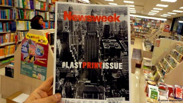 روز دوشنبه (۳۱ دسامبر/ ۱۱ دی) آخرین نسخهی کاغذی مجله "نیوزویک" راهی بازار شد. روی صفحه نخست این نسخه تصویری هوایی از ساختمان انتشارات مجله در محله "منهتن" نیویورک چاپ شده بود. روی تصویر تیتری شبیه به عبارتهای توئیتری به چشم میخورد: # نسخهی آخر.