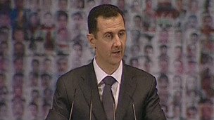 آقای اسد در نطق روز یکشنبه در تالاری در دمشق که اولین سخنرانی عمومی او در حدود شش ماه اخیر بود مخالفانش را "دشمنان خدا و دست نشانده های غرب" خواند و گفت که سوریه خواهان مذاکره با "اربابان است نه خدمتکاران آنها."