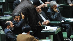 محمود احمدی نژاد، قرار بود که در آذر ماه گذشته برای پاسخ دادن به سوال تعدادی از نمایندگان مجلس در مورد عملکرد خود، در مجلس ایران حاضر شود، اما حضور وی، با دستور مستقیم آیت الله خامنه ای منتفی شد.